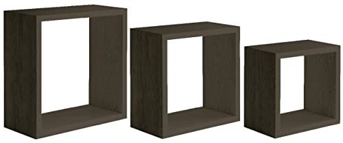 Homemania HOMSAN_069 Inkubo hylla väggdekoration-vardagsrum, sovrum, skrivbord-MDF, Wenge 35 X 35 X 15,5/30 X 30 X 15,5/25 x 25 X 15,5