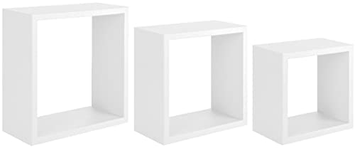 Homemania HOMSAN_065 Inkubo hylla väggdekoration-vardagsrum, sovrum, skrivbord-MDF, vit 35 X 35 X 15,5/30 X 30 X 15,5/25 X 25 X 15,5