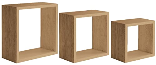 Homemania HOMSAN_084 Inkubo hylla väggdekoration-vardagsrum, sovrum, skrivbord-MDF, tobak ek 35 X 35 X 15,5/30 X 30 X 15,5/25 X 25 X 15,5