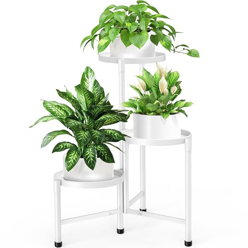 JOENCOST 3 djur metall växtställ blomhylla växthylla, 115 cm hög rostfri blomställ blombänk blomtrappa, växttrappa, stående hylla för inomhus utomhus trädgård balkong dekoration vit
