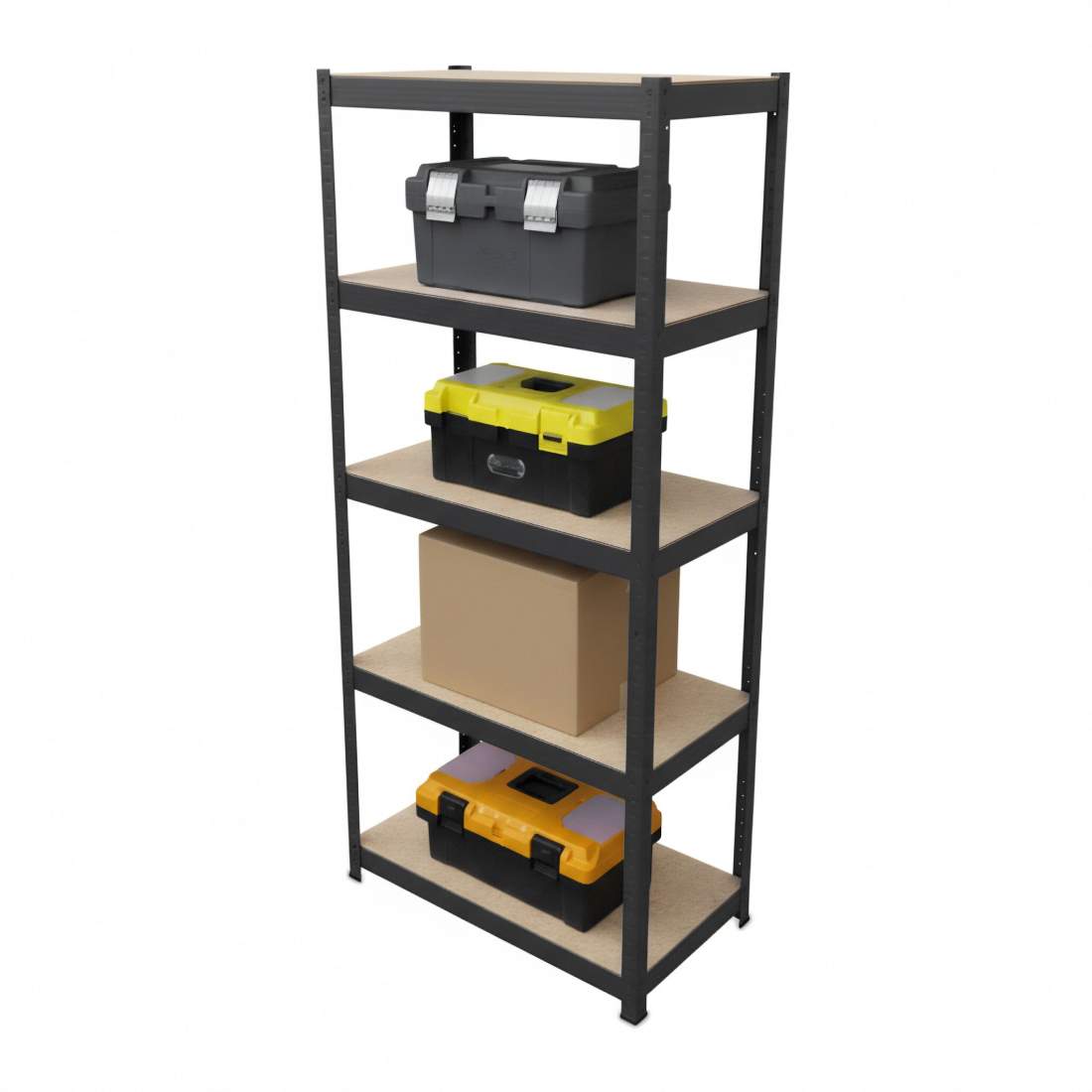 T-RAX 3 x Robusta Svarta Garagehyllor Hyllenhet Verkstadshylla Verkstadshyllor Garage Garagehyllor Förvaring MDF Bultfritt 75 cm / 750 mm x 30 cm / 300 mm x 150 cm / 1500 mm + GRATIS Gumminklubba