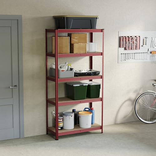 Home Vida 5 nivåer röd kraftig justerbar stål garage hyllenhet (H) 1800 mm (B) 900 mm - 875 kg viktkapacitet