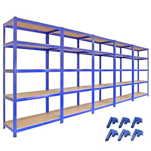 T- Rax Garage Hyllenhet Extra bred Blå - 5 Hyllor Slitstark Ställning Förvaring Stål Verktygshyllor Lager Lagerhyllor Garage Metall & MDF Bultlöst Monteringssystem 1400 kg kapacitet 280 kg per hylla