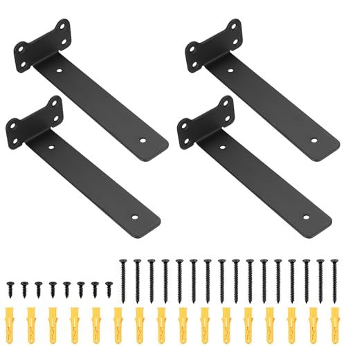 Starunder 6-pack flytande hyllfästen, 25 cm kraftig industriell hyllfäste, svarta L-fästen i metall för hyllor stöder gör-det-själv (1/5 tum tjock)