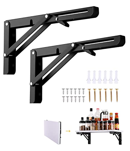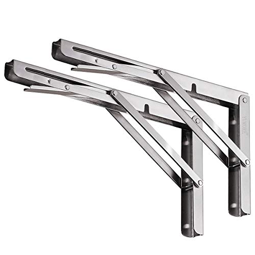 YUMORE Fällbart hyllfäste 12 tum, kraftig hopfällbar hyllkonsol i rostfritt stål maxbelastning 150 kg väggmonterad bordsstödgångjärn för platsbesparande gör-det-själv arbetsbänk, 2-pack