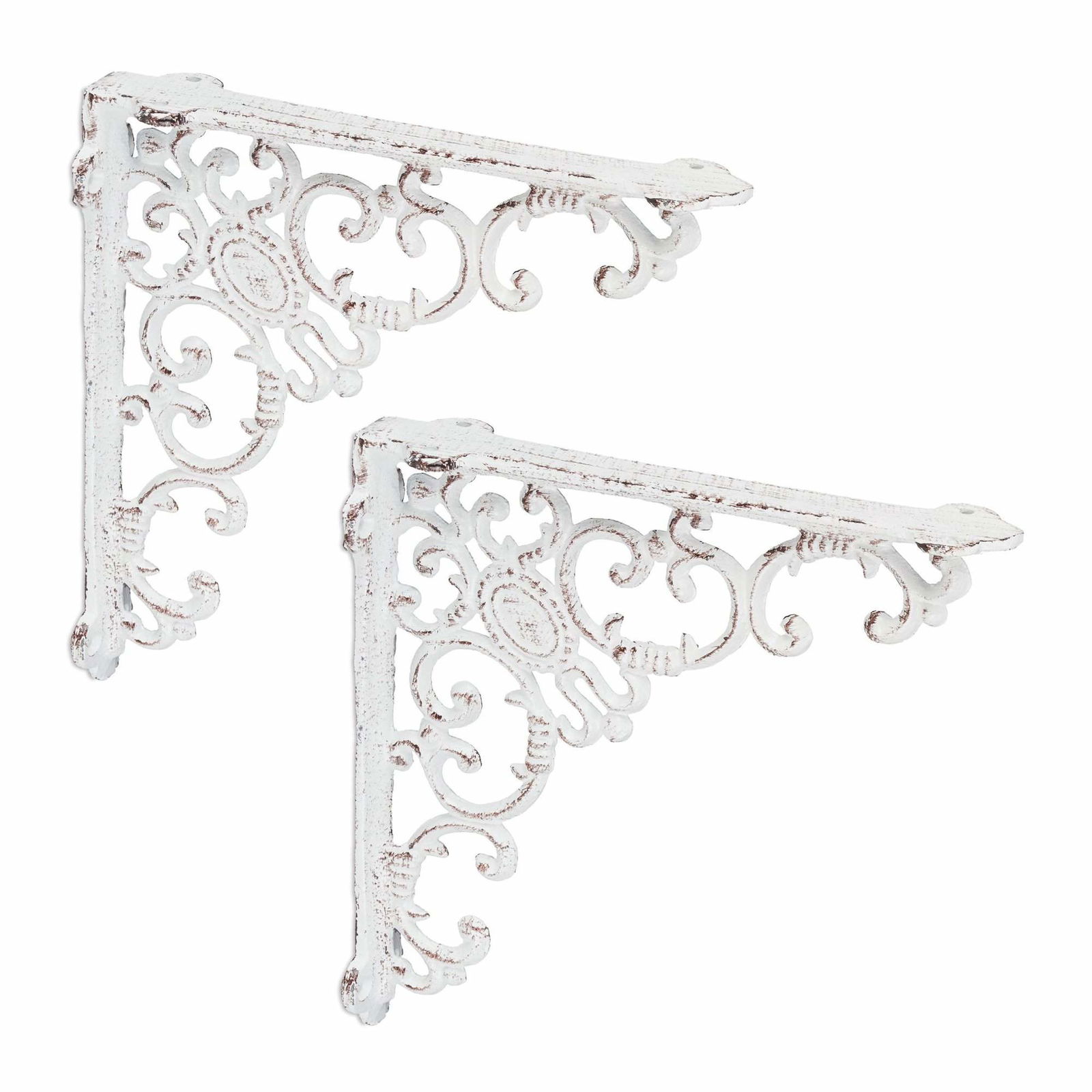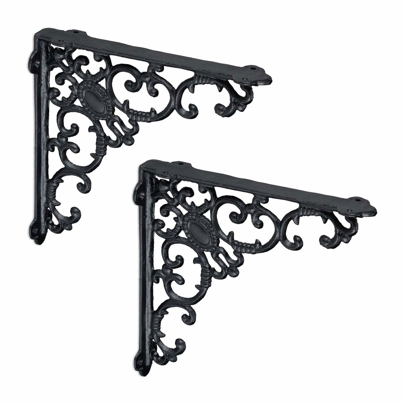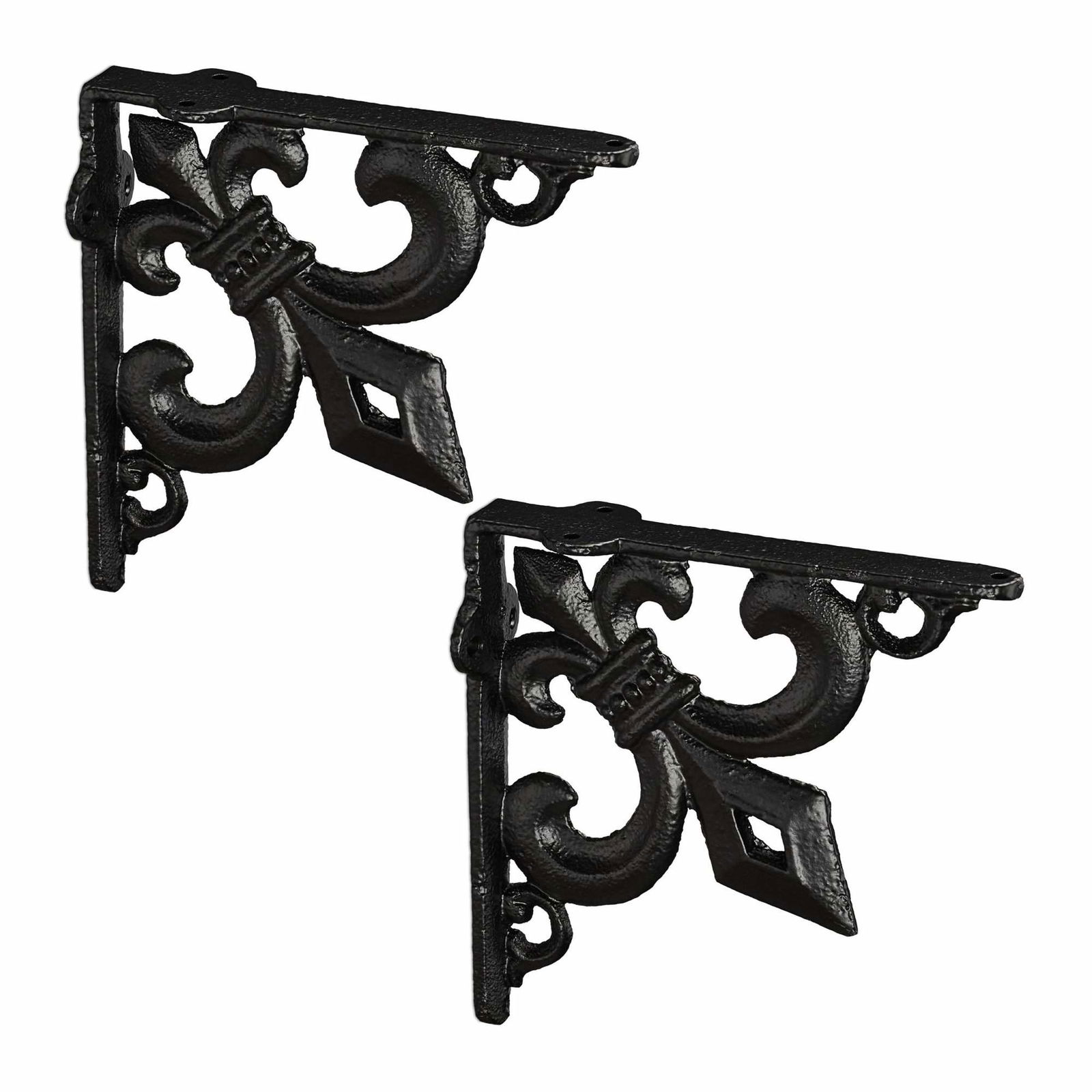 Relaxdays 8x hyllkonsol i nostalgisk design med fransk lilja, väggkonsol i gjutjärn, väggfäste, hyllfäste, svart