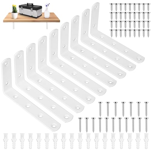 Sayayo Hyllkonsol Hörnfästen Vinkelfäste Hyllstöd Vägghängande Hyllfäste 250 x 150 mm, Rostfritt Stål Vitt, 4st. EJ5218W-4P
