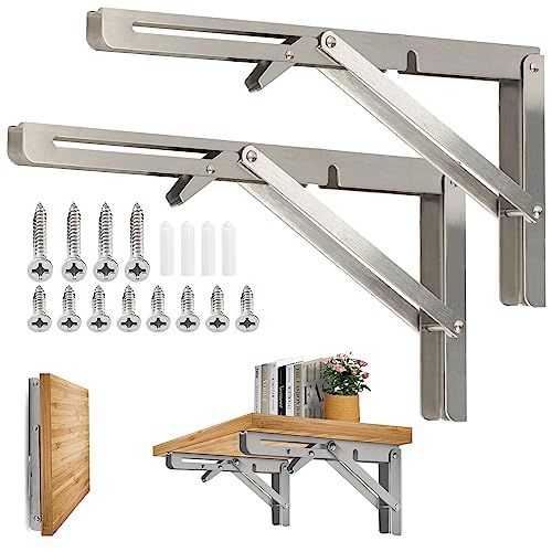 DUNSOO Fällbart fäste tungt 400mm, 2 stycken hyllfäste i rostfritt stål som kan belastas med 150kg, hyllfäste som kan fällas ihop för kök, garage etc. Platsbesparande