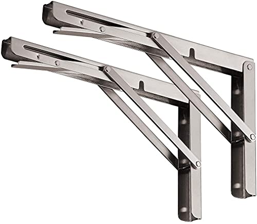 Fällbara hyllfästen 35 cm, kraftig rostfritt stål hopfällbar gör-det-själv väggmonterad hyllfäste, maximal belastning: 68 kg, för bord arbetsbänk utrymmesbesparing, paket med 2 (35 cm, rostfritt stål)