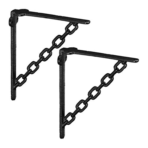 Relaxdays 6x hyllkonsol i rustik vintage design med kätting, väggkonsol i gjutjärn, väggfäste, hyllfäste, svart