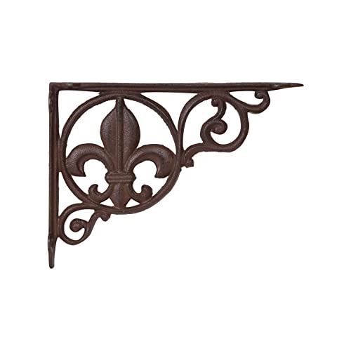 Relaxdays 8x hyllkonsol i nostalgisk design med fransk lilja, väggkonsol i gjutjärn, väggfäste, hyllfäste, svart