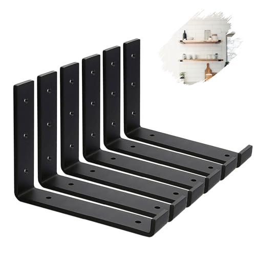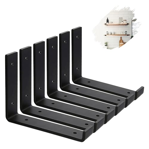MLOQI Hyllkonsol svart, 6 flytande hyllkonsoler, hyllvinkel med läppar, industriell hylla, vägghylla, hållare (30 x 15 cm)