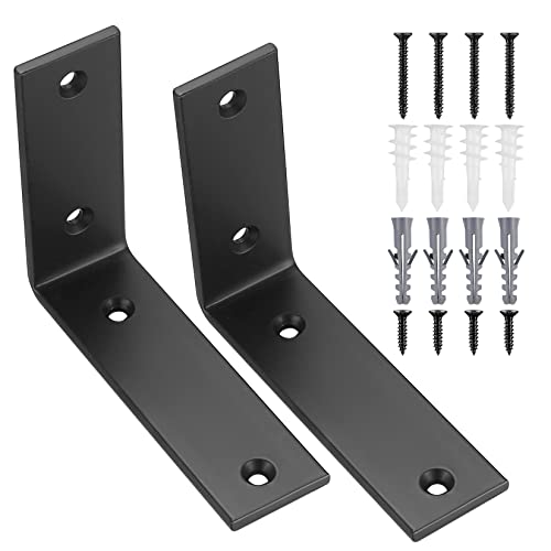 Hyllvinkel svart, 90 graders hyllkonsol, vinkel av högkvalitativt järn, mångsidig metallvinkel för trähyllor och trämöbler, 2 stycken svarta hyllkonsoler (200 x 150 x 38 mm)