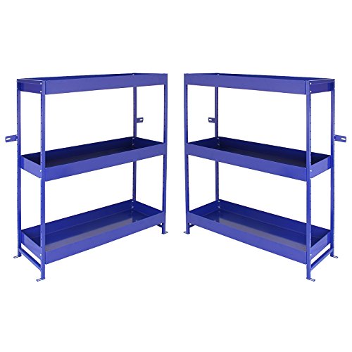 Skåphylla hyllor förvaring metall verktyg organisationsställ x 2 duo blå verkstad garage stål | 116 x 101 x 36 cm