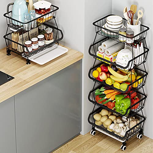 Kolensa Trådkorgar i metall med hjul, stapelbara förvaringskorgar för kök, organiseringshylla med 3-4-5-6 nivåer för frukt och grönsaker, matvagnar för säsongsbetonade rätter, hyllor för garage,