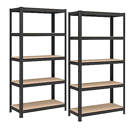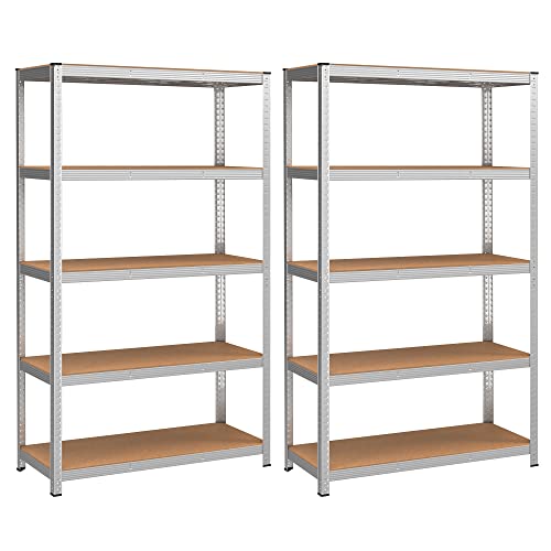 VOUNOT Uppsättning av 2 förvaringshylla metall garage 90 x 40 x 180 cm, tunga lasthyllor, hyllor med 5 hyllor, kapacitet 875 kg, för verkstad, lager, kontor