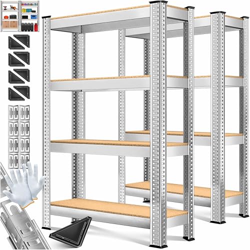 MASKO® Set om 2 förvaringshyllor för tung last, källarhylla, 160 x 80 x 40 cm, kan belastas med upp till 700 kg, 4 justerbara hyllor, MDF-plattor, hylla av metall, plug-in, verkstadshylla, källare, garage