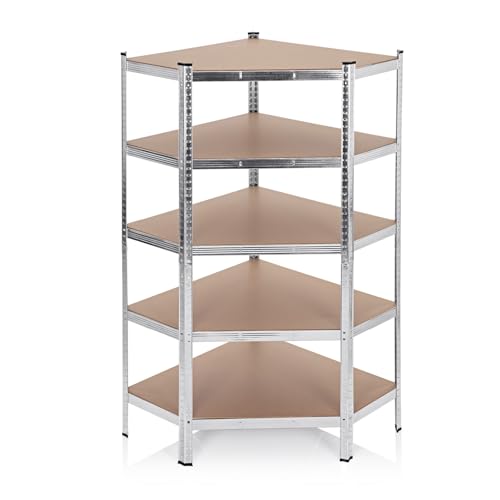KESSER® Hörnhylla, förvaringshylla, tung lasthylla, källarhylla, 180 x 75 x 40 cm, upp till 875 kg, 5 justerbara hyllor, MDF-plattor, hylla av metall, plug-in, verkstadshylla, källare, garage