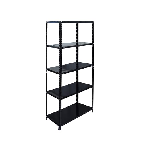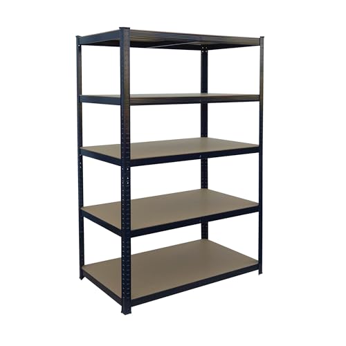 Brigros Metallhylla Garage 180x90x40cm Hög kapacitet 875 kg, 5 Mdf-hyllor, Platsbesparande Hylla Idealisk För Garage, Verkstad, Källare, Lager, Modulär Design (Dubbel, Svart)