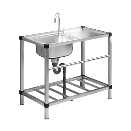 Fristående Diskbänk I Rostfritt Stål Enkel Skål Fristående Tvättho Med Kallt Varmvatten Rör Kran Förvaring Hyllor För Restaurang Kök Tvättstuga Garage
