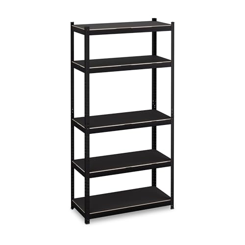 Relaxdays Tung lasthylla, 180 x 90 x 40 cm, 5 hyllor med hög kapacitet 875 kg, garage och källare, av stål, svart, fiberplatta