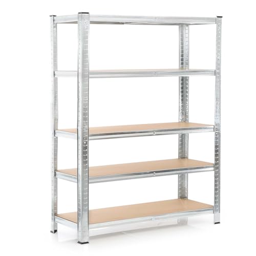 Wiltec lagerhylla 120x40x180cm, total lastkapacitet 875kg, skruvfri hylla i galvaniserat stål, lasthylla med 5 hyllplan, verkstadshylla