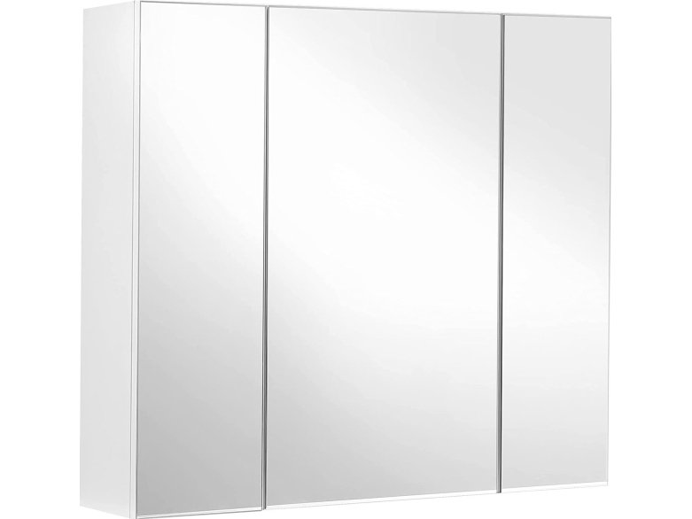 VASAGLE väggskåp för badrum, skåp med spegel, 3 dörrar, 15 x 90 x 60 cm, med justerbart hyllplan, modernt, vitt, BBK032W01