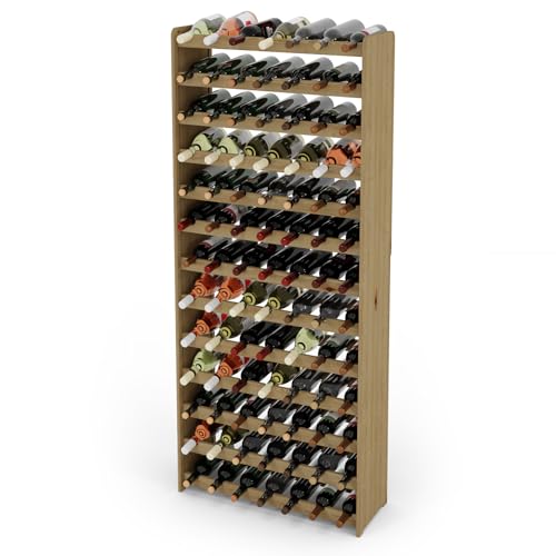 Lenmar Serie RW Vinställ av trä, för flaskor, antracit, brun eller natur, RW-3, 13–15 hyllplan, för 91–135 flaskor, hylla för vinflaskor (natur, RW-3-91, 172 x 72 x 26,5 cm, för 91 flaskor)
