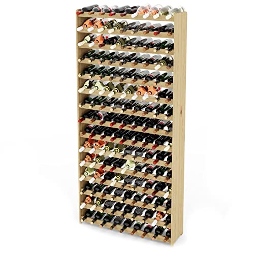 Lenmar Serie RW Vinställ av trä, för flaskor, antracit, brun eller natur, RW-3, 13–15 hyllplan, för 91–135 flaskor, hylla för vinflaskor (natur, RW-3-135, 198 x 92 x 26,5 cm, för 135 flaskor)