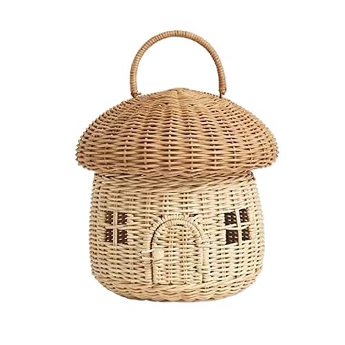 Svampförvaringskorg med Lock, Dekorativ Handtagskorg, Hyllplan i för Barnrum Vardagsrumsdekoration 25 cm