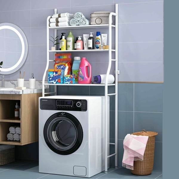 Hyllplan Över Tvättmaskin Med Krokar, 65 X 25 X 155 Cm
