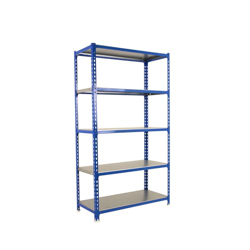 SimonRack Förvaringshylla 5 Hyllplan, 1800x800x300 mm – Garagehylla i Blå/Galvaniserad, 180 kg Belastning per Hyllplan - Simoclick