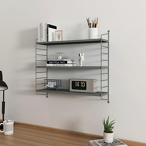 [en.casa] Strängnäs Modulhylla, metallhylla, hängande hylla med 3 hyllplan, badrumshylla, köksvägghylla, vägghylla för vardagsrum, antracitgrå