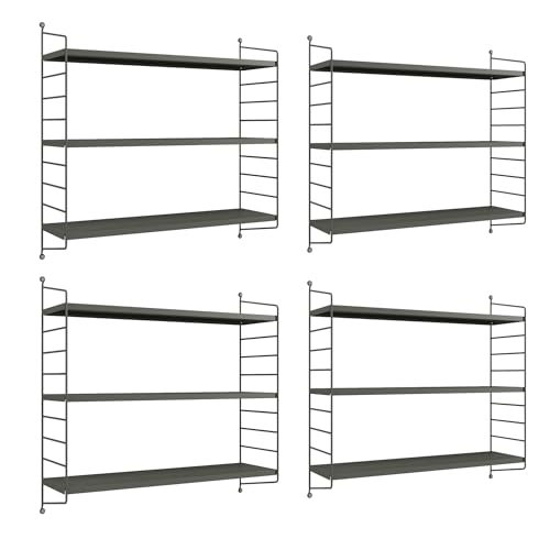 [en.casa] Strängnäs Modulhylla i set om 4, metallhylla, hängande hylla med 3 hyllplan, badrumshylla, köksvägghylla, vägghylla för vardagsrum, antracitgrå
