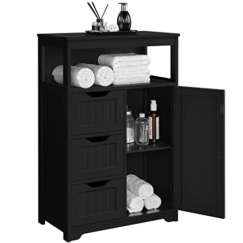 Yaheetech Badrumsskåp, sidoskåp, badrumsskåp med 3 lådor och 1 dörr, justerbart hyllplan, vardagsrum/kök/hall, svart