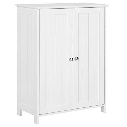 Yaheetech Badrumsskåp fristående badrumsskåp förvaringsskåp med dubbeldörr och justerbar hyllplan badrum/vardagsrum/entré vit 60 x 30 x 80 cm