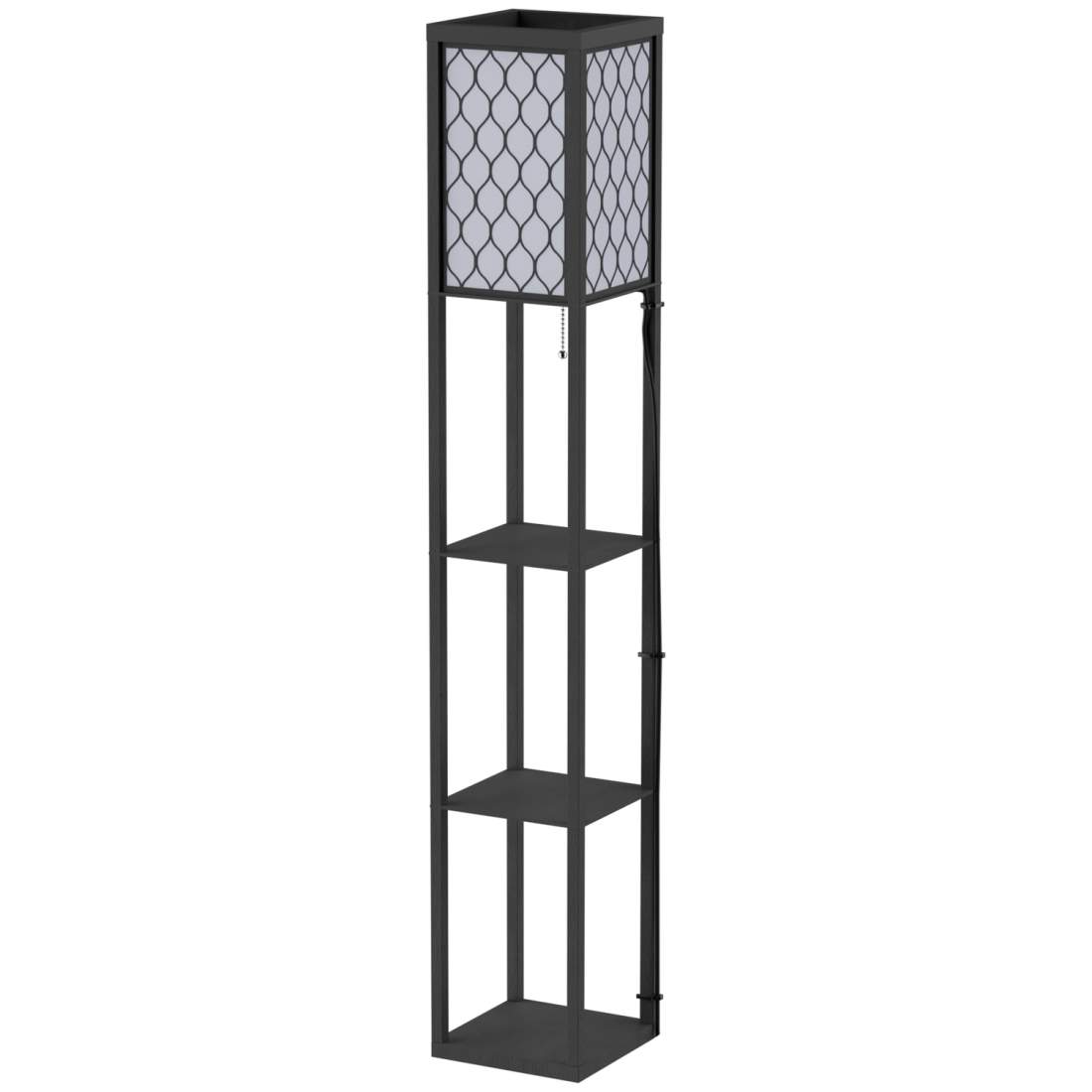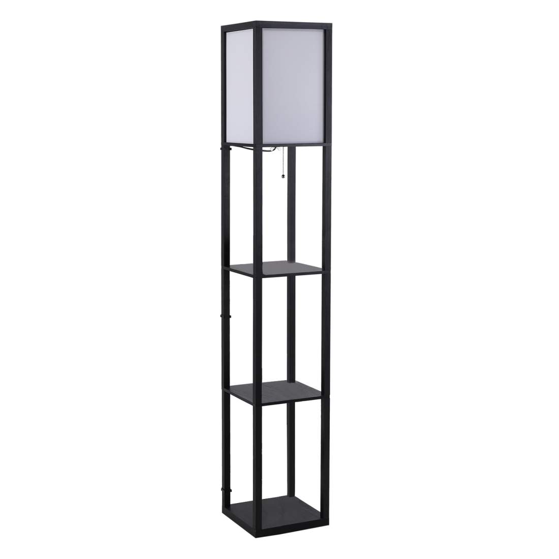 Svart Trägolvlampa med Hyllplan för Vardagsrum