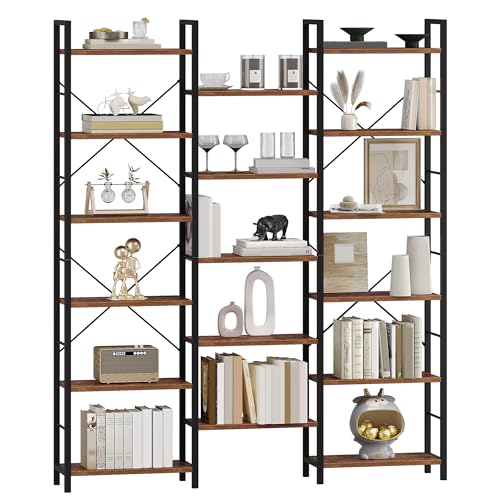 Tribesigns Industriell bokhylla för hörn med 7 hyllplan, av trä och metall, fristående displayhylla, för vardagsrum, kök, hem, kontor, svart