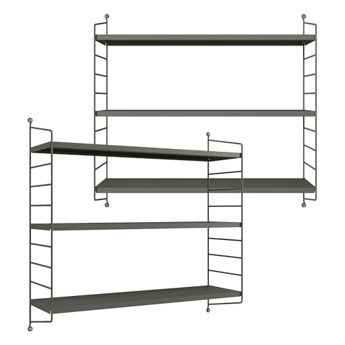 [en.casa] Strängnäs Modulhylla i set om 2, metallhylla, hängande hylla med 3 hyllplan, badrumshylla, köksvägghylla, vägghylla, vardagsrum, antracitgrå