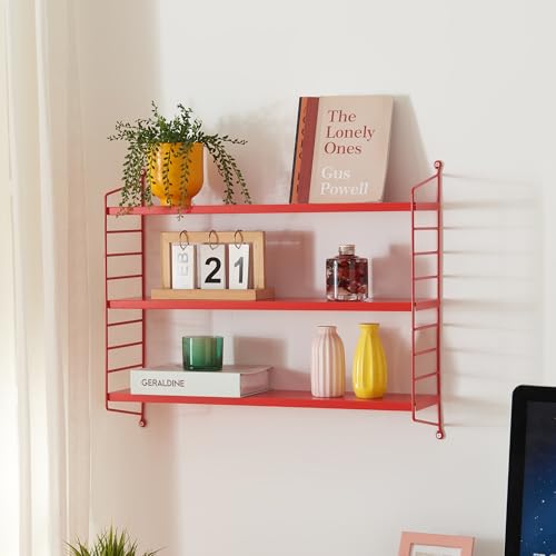 [en.casa] Strängnäs Modulhylla, metallhylla, hängande hylla med 3 hyllplan, badrumshylla, köksvägghylla, vägghylla, vardagsrum, röd