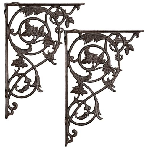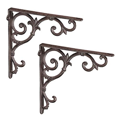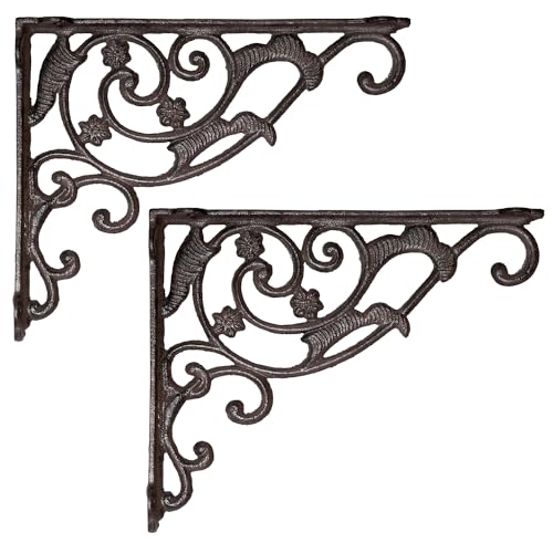 8 x hyllvinklar antik, hyllstöd, gjutjärn, barockornament, vinkel för hyllor, vintage, hyllhållare, brun