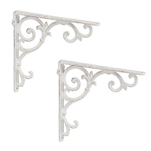 2 x hyllvinklar antik, hyllstöd, gjutjärn, barockornament, vinkel för hyllor, vintage, hyllhållare, vit