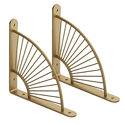 Hyllkonsol i guld, väggdekor, solform, rätvinkliga, hyllstöd, järnkonst, hållbara flytande hyllfästen, för hem, kontor, restaurang, 2 stycken (150 mm/5,9 tum)