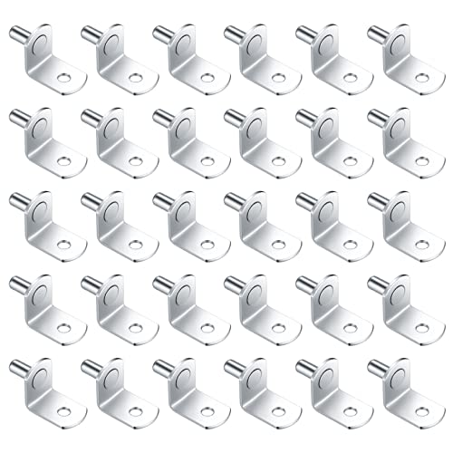 30 st hyllstöd, L-formade hyllkonsoler, metall, 5 mm förnicklade hyllpennor, hyllstöd, hyllbrädehållare för skåp, bokhyllstöd