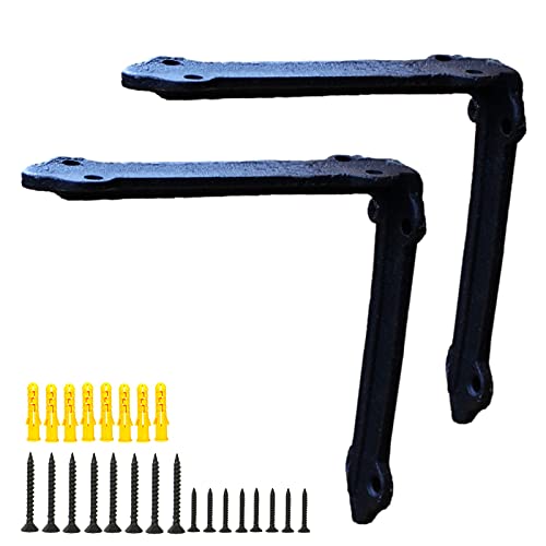 Gjutjärn hyllkonsoler tung last hyllstöd höger flytande vinkelhållare väggkonsol 2 stycken, med skruvar och expansionsrör för trädgårdsbalconies hyllkonsol (197 mm x 150 mm)