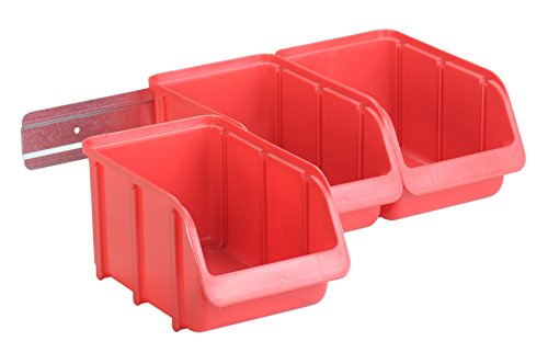 hünersdorff 656600 insynsbox-set: 1 x plastskena plus 3 x förvaringslådor i storlek 3, vägghållare inkl. förvaringslådor för hyllsystem, röd, 3 x storlek 3