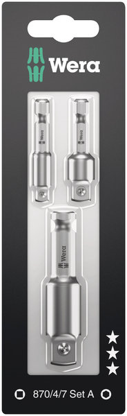 Borrmaskinsadaptersats, 3 delar, sexkant på fyrkant från WIESEMANN 1893 I Hylsadapter för 1/4", 3/8", 1/2" I i CV-stål I 81048