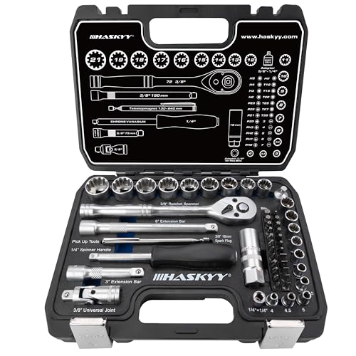 Haskyy 52 delar, Torx hylsnyckelsats, XZN E-formad, hyls-set, 12-kantshylsor, 6-kantshylsor, Hex, Harley, metrisk, 1/4 tum och 3/8 tum, hylsbits, 4-19 mm