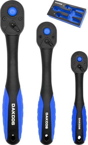 DAKCOS hylsnyckelsats 1/4 tum 3/8 tum 1/2 tum hylsnyckel med snabbfrigörande komposit offsethandtag vändbar nyckel 72 tänder