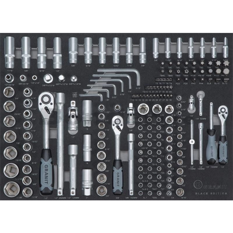 Brüder Mannesmann M98430 hylsnyckelsats 0,6 cm (0,25 tum) + 0,95 cm (3/8 tum) + 1,27 cm/(1/2 tum) drivning, 215 delar